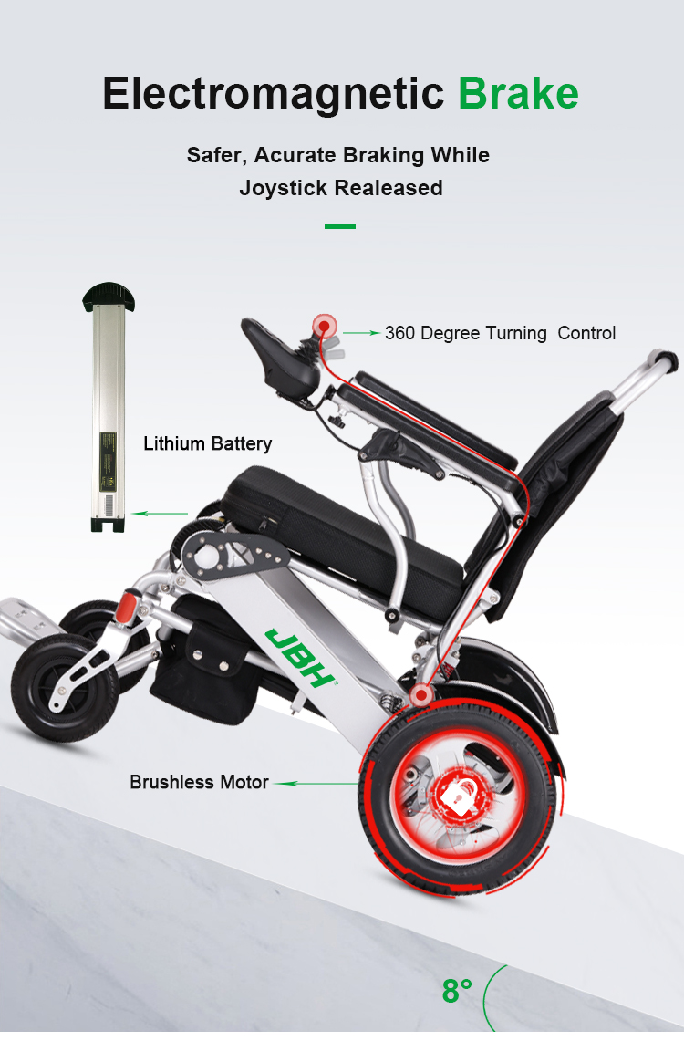 1. Der elektrische Rollstuhl kann in einer Sekunde falten oder sich entfalten und als Gepäck im Flugzeug oder im Zug leicht zu tragen.