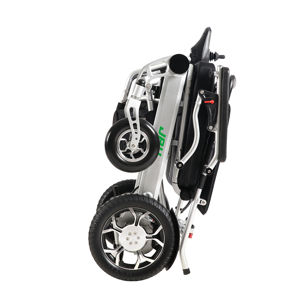 Ziehmodus nach dem Zusammenklappen: Nach dem Zusammenklappen lässt sich der D25 bequem in eine kompakte Größe verwandeln, die leicht hinter dem Benutzer hergezogen werden kann. Dieser Modus ist besonders nützlich in Situationen, in denen das Schieben oder Tragen des zusammengeklappten Rollstuhls nicht möglich ist, und bietet verbesserte Tragbarkeit und Komfort.